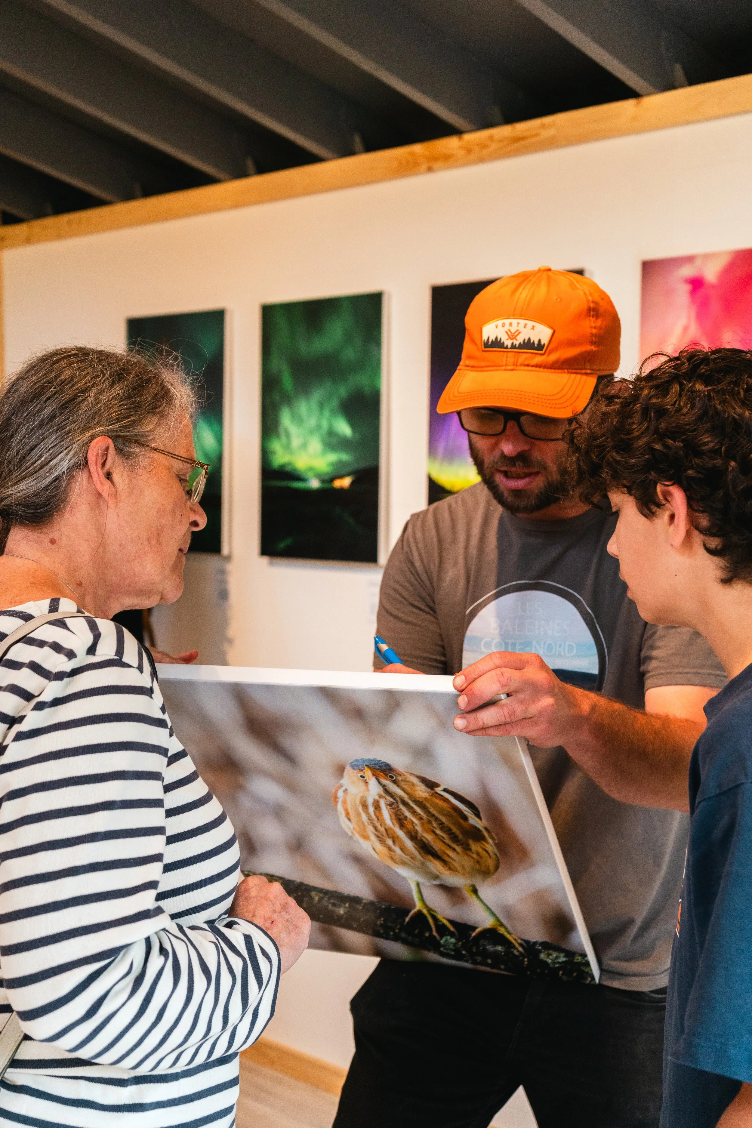C’est en juillet 2025 que l’aventure de ma Galerie-Boutique commence, la réalisation d’un rêve après des années de réflexions et des mois de travail! Dans la section galerie, vous pourrez contempler 2 expositions, la première nommée RORQUAL en hommage aux merveilleuses baleines de l’estuaire du Saint-Laurent et la deuxième nommée AURORES, souvenir de mes plus belles nuits sous le ciel étoilé de la Côte-Nord. Le coin boutique mets en valeur la faune et les paysages nocturnes du Québec. Vous serez en mesure de vous procurer différents produit fait au Québec et par le fait même, de soutenir le travail d’un artiste photographe indépendant. Cartes de voeux, autocollants, impressions beaux-arts, livres, affiches ne sont que quelques exemples de produits que vous y trouverez. Je me ferai un plaisir de vous accueillir dans ma petite et chaleureuse galerie pour vous relater mes aventures avec la faune et vous raconter les histoires derrière mes images!